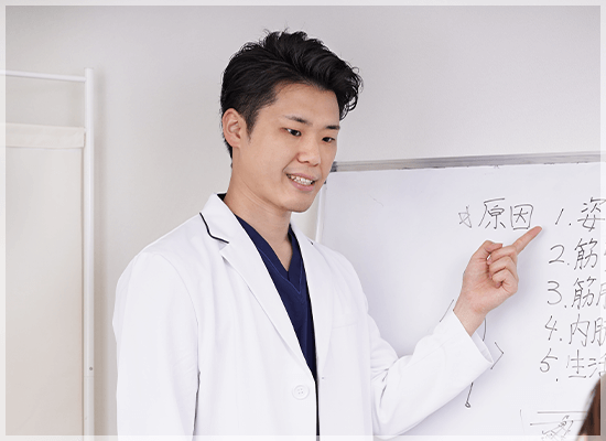 私はこれまでに鍼灸接骨院勤務時代、そして整体師として大変多くの腰痛で悩まれている方に携わってきました。その中で培った施術技術でどうしても「改善があまり感じられない...」と思った場合は、初回の施術が終わった時点でお伝えください。