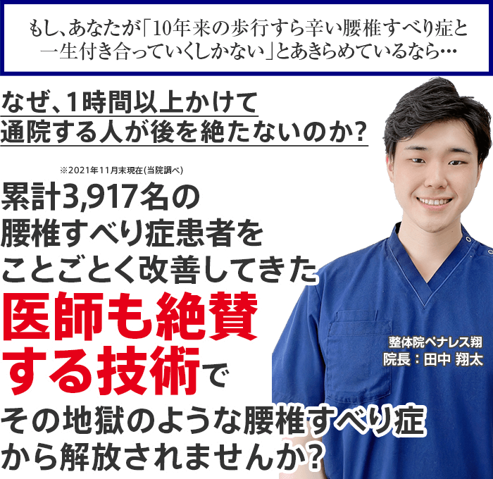 もしあなたが今、上記のようにお悩みなら、もしあなたが今、ほんの少しでも⼼のどこかに、よくなりたいと思うのなら整体院ペナレス翔~PenaresSho~に来院し、そのつらい腰痛を根本改善しませんか?